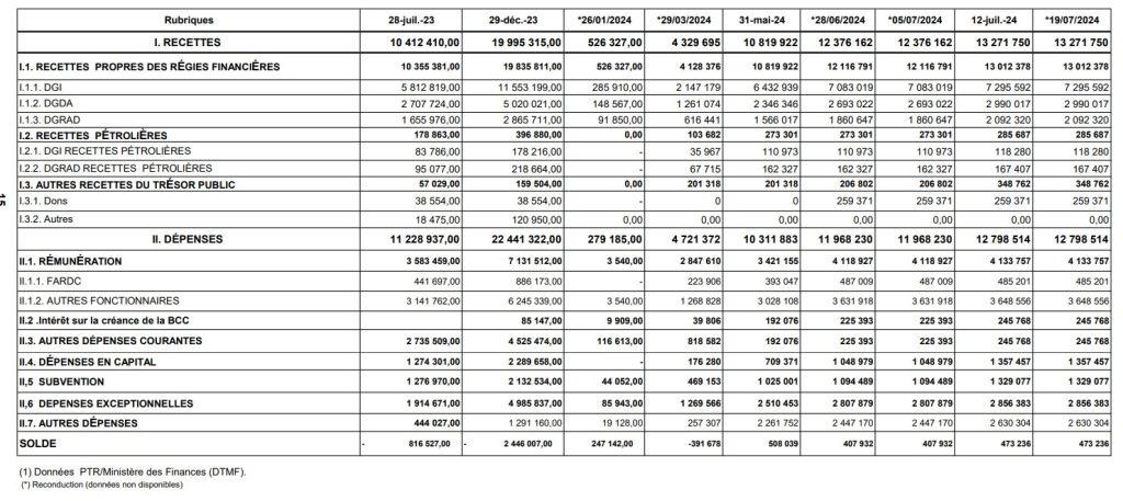 Au cours d’une rencontre avec quelques patrons de presse, le ministre des Finances Doudou Fwamba a annoncé la semaine dernière que le gouvernement Suminwa a réalisé un excédent cumulé de trésorerie de plus de 400 millions de dollars américains à fin juillet. Selon lui, ce serait la conséquence de l’orthodoxie de la gestion des dépenses publiques imposée depuis l’investiture de cette équipe gouvernementale. «Grâce à la batterie des mesures conjoncturelles en vigueur, nous avons réalisé à fin juillet, un excédent de trésorerie de plus de mille milliards de francs congolais, soit plus de 400 millions de dollars américains», s’est vanté M. Fwamba. Pourtant, à l’analyse, il s’agit de simples rodomontades, car le tableau budgétaire du pays n’a jamais autant viré au rouge.