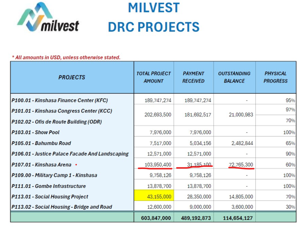 Et que dire des « paiements encaissés » ? Au moment où le Ministre Kazadi quittait le gouvernement en juin 2024, Milvest n’avait touché que 31,1 millions USD, soit 29,9 % du contrat, alors que 60 % des travaux étaient déjà réalisés grâce à ses préfinancements. Les accusations de Mpararo ne sont pas des révélations : ce sont des contes.