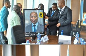 Les syndicalistes de l’ACP offrant au VPM Adolphe Muzito en cadeau un portrait de lui (au dessus), et Adolphe Muzito conférant avec la délégation...